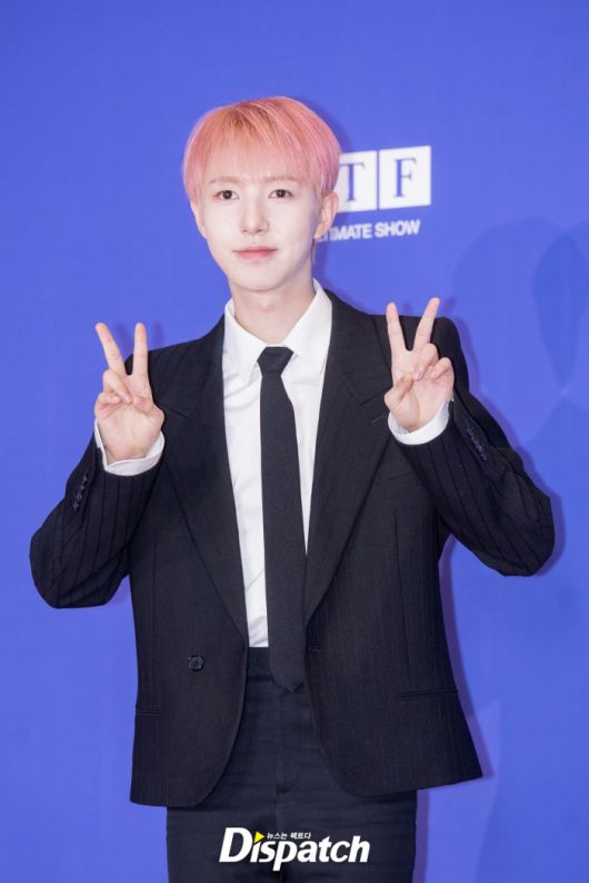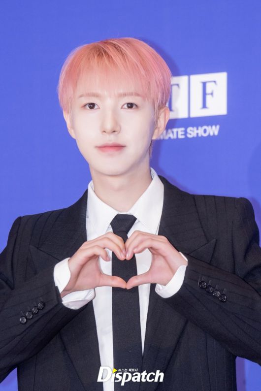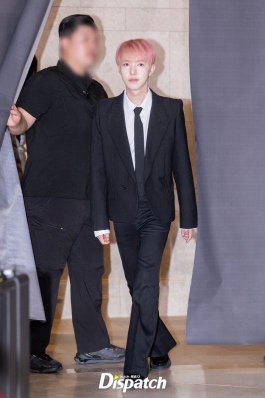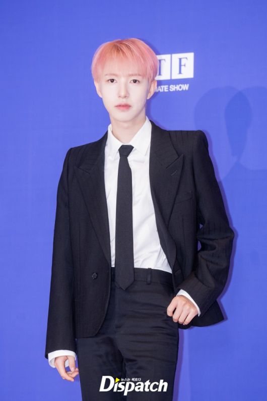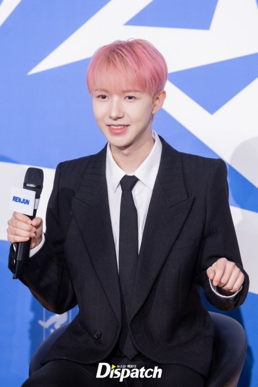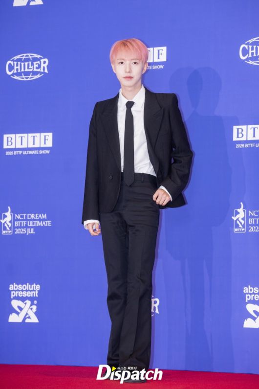 'NCT DREAM'은 블랙 수트로 남성미를 드러냈다. 런쥔은 핑크 헤어스타일로 포인트를 줬다.