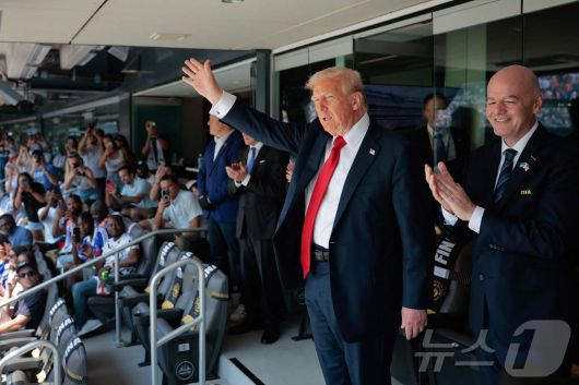 도널드 트럼프 미국 대통령이 13일(현지시간) 뉴저지 이스트 러더퍼드 메트라이프 스타디움에서 열린 잉글랜드 첼시와 프랑스 파리 생제르맹의 2025 피파(FIFA) 클럽 월드컵 결승전 참관을 위해 입장한 뒤 관중들에 손을 들어 보이고 있다. 2025.07.13 ⓒ AFP=뉴스1 ⓒ News1 류정민 특파원 |