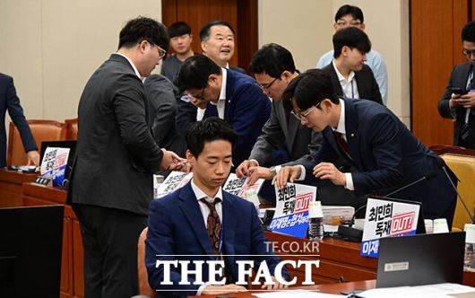 이에 반발한 여당 측 의원들은 피켓 제거를 요구했지만 받아들여지지 않았다. 청문회가 개회조차 못한 상황에서 최민희 위원장은 산회를 선포한 뒤 자리를 뜨기도 했다.