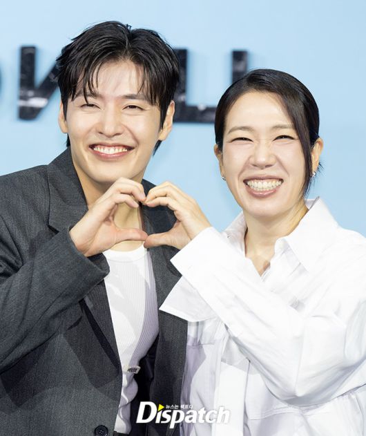 강하늘, 염혜란은 손하트로 분위기를 밝게 했다. 데칼코마니 미소로 시선을 사로잡았다.