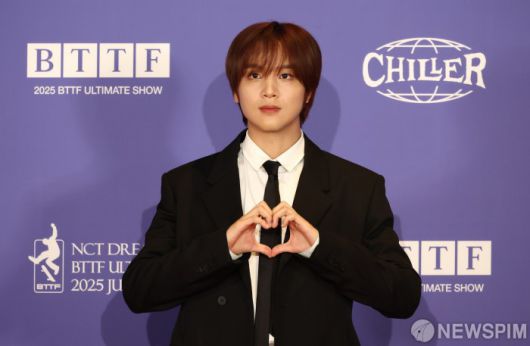 [서울=뉴스핌] 최지환 기자 = 그룹 NCT DREAM 멤버 해찬이 14일 오전 서울 잠실 롯데시네마 월드타워에서 열린 정규 5집 'Go Back To The Future' 제작발표회에 참석해 포토타임을 갖고 있다. 2025.07.14 choipix16@newspim.com