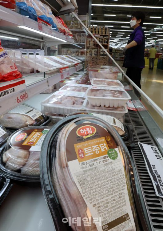[이데일리 방인권 기자] 때 이른 무더위로 농산물값이 오르는 '히트플레이션' 현상이 나타나며 최근 일주일 새 수박 한 통이 3만원을 넘어서고, 특히 배추나 시금치 같은 더위에 약한 채소 가격이 상승한 가운데 14일 서울 서초구 하나로마트 양재점을 찾은 시민들이 생닭을 살펴보고 있다.