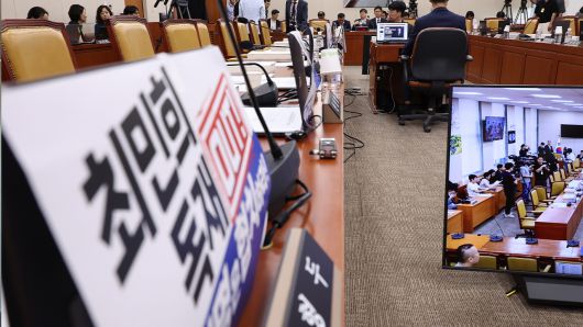 결국 최 위원장은 산회 선포 1시간 16분 만인 오전 11시 22분 개회를 선언하고 팻말 제거를 재차 요구했으나 국민의힘 위원들 반발로 14분 만에 정회했습니다.