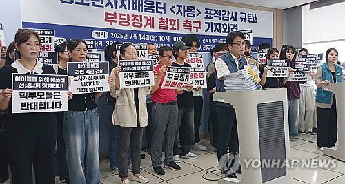 (전주=연합뉴스) 백도인 기자 = '자몽을 사랑하는 교사·학부모·청년과 시민사회단체 일동'이 14일 전북교육청에서 기자회견을 열고 '전북특별자치도교육청이 도의원과 갈등을 빚어온 군산지역의 청소년 자치시설에 대해 표적감사를 했다'는 의혹을 제기하고 있다. 2025.7.14