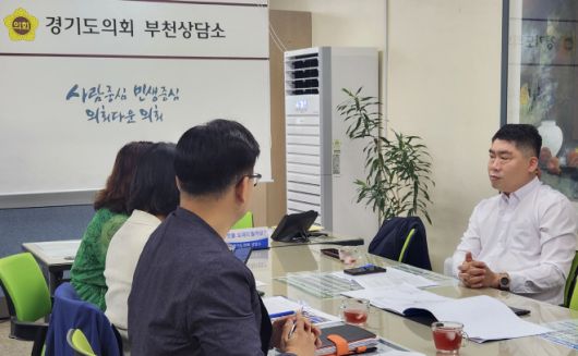 유경현 의원. 7월 14일, 부천시 정애경 복지국장, 담당자들과 함께 고강종합사회복지관 어린이놀이시설 환경개선을 위한 정담회 진행. (사진=경기도의회) |