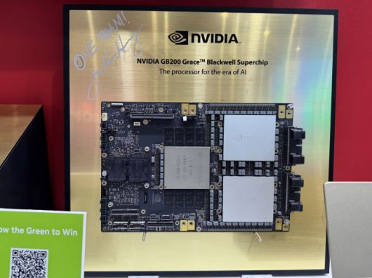 젠슨 황 엔비디아 CEO가 대만 테이베이에서 열린 ‘컴퓨텍스 2025’에서 SK하이닉스 부스를 찾아 전시된 제품 GB200 그레이스 블랙웰에 “원팀!”(ONE TEAM!) 사인을 남겼다. (사진=연합뉴스) |