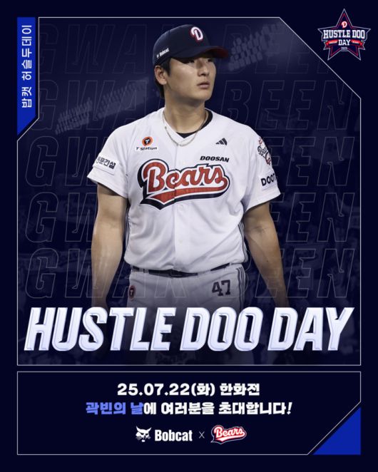 두산은 "오는 22일 잠실야구장에서 열리는 한화이글스와 정규시즌 맞대결에서 '곽빈 밥캣허슬두데이' 행사를 진행한다"고 14일 전했다.