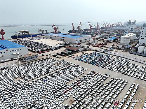중국 동부 장쑤성 롄윈강시에서 수출 대기 중인 자동차들 |