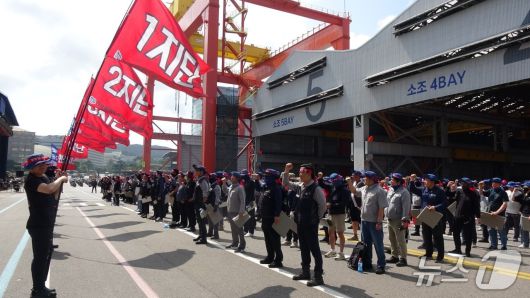 이어 17일에는 오전 9시부터 오후 5시까지 7시간 파업한다. 오전 9시 30분부터는 울산조선소 내 민주광장에서 집회를 연다.