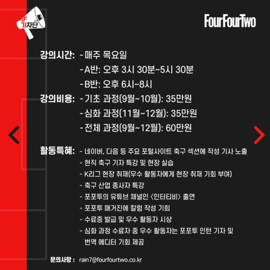은 전 세계에서 가장 많은 부수를 발행하고 있는 'No.1' 축구 전문지 '포포투'와 국내 최고의 축구 매체 '인터풋볼'이 함께 하는 예비 축구 전문 기자단이다.