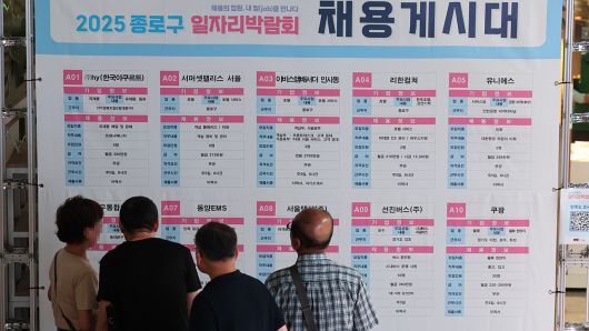 ▲ 지난 10일 서울 종각역 태양의 정원에서 열린 종로구 일자리 박람회를 찾은 구직자들이 채용게시대를 살펴보고 있다.