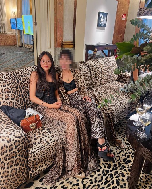 사진 속 야노 시호는 화사한 플로럴 패턴의 미니 드레스를 입고 밝고 사랑스러운 분위기를 자아냈다. 야노 시호 옆에는 레오파드 패턴의 세련된 롱 드레스를 완벽하게 소화한 추사랑이 함께 포즈를 취하고 있다.