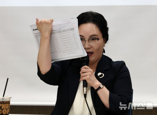 [서울=뉴시스] 배훈식 기자 = 김경한 전국사학민주회교수노조 위원장이 14일 오후 서울 용산구 비앤디파트너스 서울역점 강당에서 열린 이진숙 교육부 장관 후보자 논문표절 의혹 검증을 위한 범학계 국민검증단 대국민 보고회에서 발언하고 있다. 2025.07.14. dahora83@newsis.com |