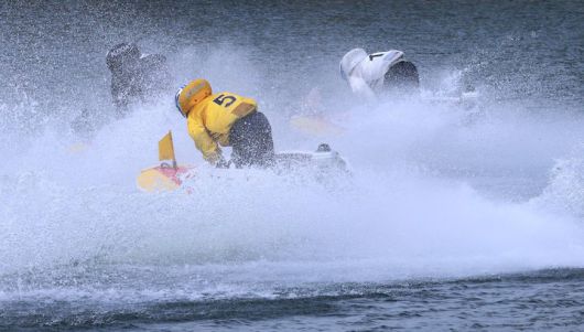 미사리경정장에서 선수들이 거센 물보라를 일으키며 턴마크를 돌고 있다.(사진 국민체육진흥공단 제공)