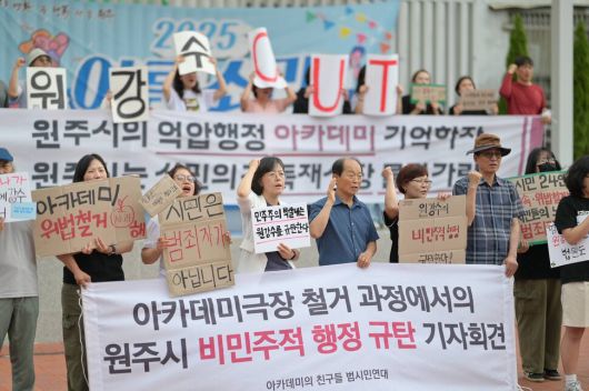 최은지 아카데미의 친구들 활동가는 “아카데미극장 문제는 원주의 공공성과 정의가 어디까지 무너졌는지를 보여주는 사건이다. 시민과 함께 지역의 문화와 미래를 만들어야 할 시 정부가 시민을 적으로 돌리고 억압하는 현실에 대해 시민사회 전체가 경각심을 가져야 한다”며 “시장에겐 임기가 있지만 우리에겐 한계가 없다. 계속 싸울 것이며, 부당한 권력에 끝까지 저항하겠다”고 말했다.