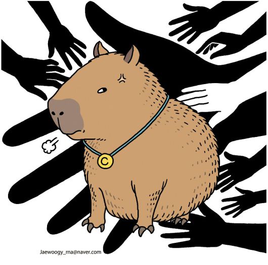 남아메리카에 서식하는 대형 설치류 카피바라가 몇년 전부터 소셜미디어에서 큰 인기를 누리고 있다. 카피바라에 대한 관심은 2018년 일본 한 동물원이 카피바라가 노천탕에 느긋하게 앉아 있는 모습을 유튜브에 공개하며 시작됐는데, 2023년 러시아 아티스트가 작곡한 노래 ‘카피바라’가 틱톡에서 폭발적 반응을 얻으면서 ‘핵인싸’로 떠오른 것이다. 블랙핑크 제니의 솔로곡 ‘라이크 제니’ 뮤직비디오에도 제니의 분신처럼 등장할 정도니, ‘초원의 지배자’라는 별명이 걸맞다.