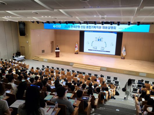 14일 한은에 따르면 한은은 지난 12일 2026년도 신입 종합기획직원(G5) 채용설명회를 성황리에 마쳤다. 37도를 넘는 폭염에도 설명회에 참석한 인원은 전년보다 37% 가량(190명→260명) 늘었다. 7월 중 지원서 접수를 거쳐 오는 9월 13일 필기시험 후 12월 최종합격이 발표된다.