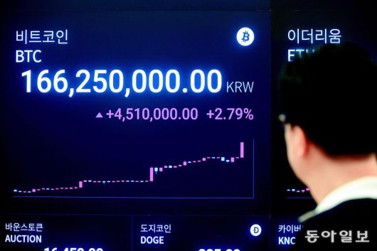비트코인이 12달러선을 돌파하며 또 신고가를 갱신했다. 14일 서울 강남구 업비트 고객센터에서 한 고객이 전광판에 있는 비트코인 시세표를 쳐다보고 있다. 전영한 기자 scoopjyh@donga.com |