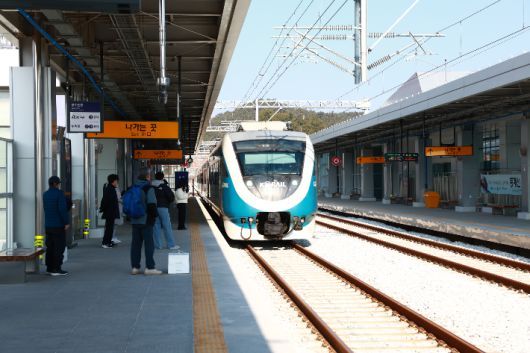 동해선 기차가 울진역에 도착하고 있다. 울진군 제공 |