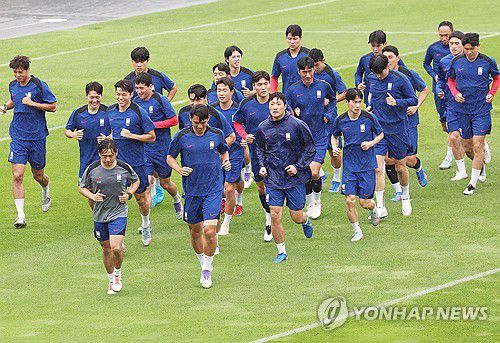 (성남=연합뉴스) 홍기원 기자 = 2025년 동아시아축구연맹(EAFF) E-1 챔피언십(동아시안컵) 남자부 3차전 일본과의 경기를 앞둔 축구 국가대표팀 선수들이 14일 경기도 성남종합운동장에서 훈련하고 있다. 2025.7.14