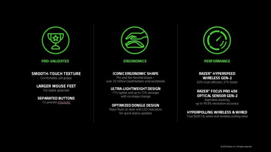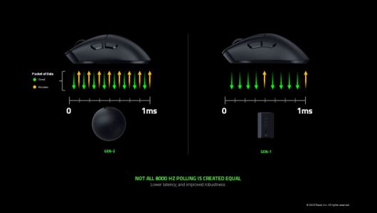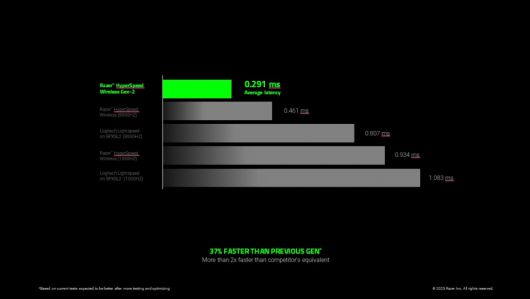 레이저는 레이저 하이퍼스피드 무선 2세대 기술이 기존 세대보다 37% 빠르며, 경쟁 제품 대비 2배 이상 빠르다는 점을 강조했다.