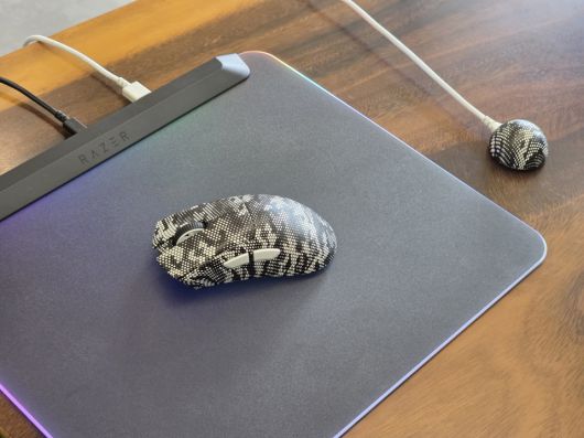 마우스 자체는 외형만 보면 페이커가 사용하는 것으로 유명한 '데스에더 V3 프로'와 크게 다르지 않아 보인다. 오른손잡이에게 적합한 폼팩터를 갖췄으며, 크기와 높이 모두 mm 단위로 전작과 같다. ABS가 아닌 지속가능한 소재로 개선되어 환경에도 신경쓴 점을 알 수 있었다.