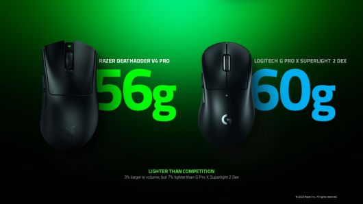 레이저의 전 세대 제품뿐만 아니라 경쟁 제품인 '로지텍 G 프로 X 슈퍼라이트 2 DEX'보다도 가볍다. 데스에더 V3 프로가 3% 더 큰 사이즈임에도 무게는 7% 가벼워 무게 우위를 점했다.