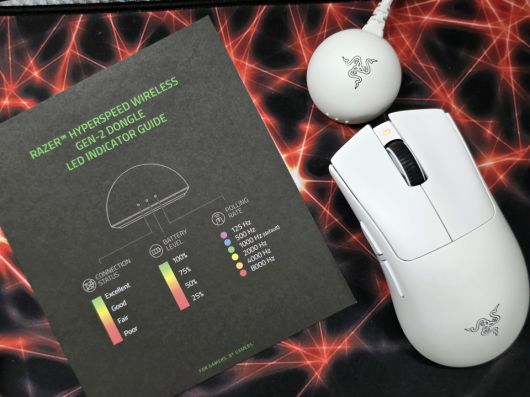 마우스를 게이밍 PC에 연결해 테스트를 진행했다. 마우스 상단의 LED와 레이저 하이퍼스피드 무선 2세대 동글에 내장된 3개의 LED로 현재 연결 상태, 배터리 잔량, 폴링 레이트 등의 정보를 전용 소프트웨어 사용 없이 직관적으로 파악할 수 있었다.