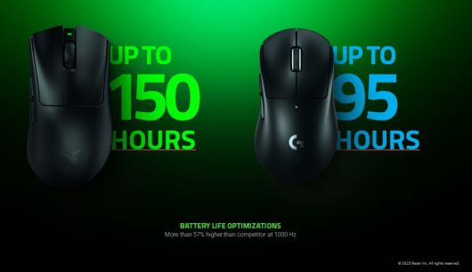 성능이 올라가면 배터리 사용 시간이 줄어들 것이라 걱정할 수 있겠지만, 레이저는 끝없는 배터리 최적화를 통해 로지텍의 동급 제품보다 57% 긴 배터리 사용 시간을 달성했다고 밝혔다.