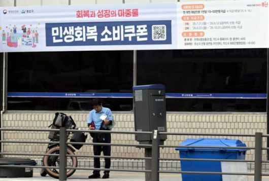 14일 서울 용산구 한 도로변에 민생회복 소비쿠폰 신청 안내문이 걸려 있다. 강예진 기자 |
