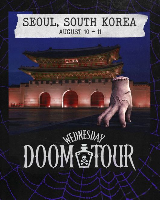 넷플릭스는 13일 공식 SNS에 "8월, 한국은 좀 서늘해지겠군. 웬즈데이의 차가운 그림자가 이 여름의 고통에서 널 해방시켜 줄 거야. 약간의 소름 끼침은 덤이고. 웬즈데이 DOOM TOUR, 서울에서 곧 만나"라는 글과 함께 오는 8월 10일과 11일 서울 방문을 예고했다.