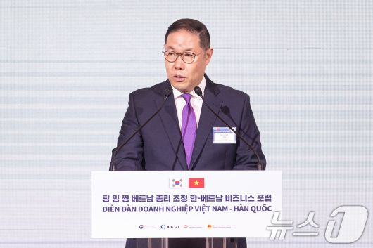 조현상 대한상의 한·베트남 경제협력위원장(효성그룹 부회장)이 지난해 7월 서울 중구 롯데호텔에서 열린 한·베트남 비즈니스 포럼에서 개회사를 하는 모습<자료사진>. 2024.7.1/뉴스1 ⓒ News1 유승관 기자 |