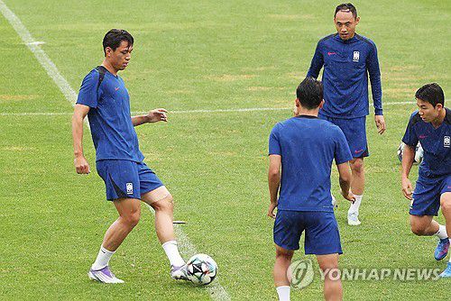 (성남=연합뉴스) 홍기원 기자 = 2025년 동아시아축구연맹(EAFF) E-1 챔피언십(동아시안컵) 남자부 3차전 일본과의 경기를 앞둔 축구 국가대표팀 오세훈이 14일 경기도 성남종합운동장에서 훈련하고 있다. 2025.7.14