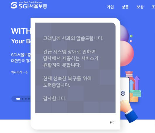 SGI서울보증 관계자는 “고객 불안과 불편을 최소화하기 위해 최선의 노력을 다하고 있다"며 "이번 장애의 조속한 해결을 위해 전사적으로 최선의 노력을 다하겠다”고 말했다.
