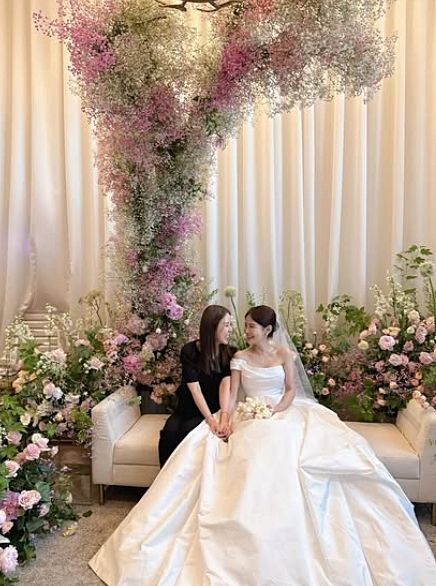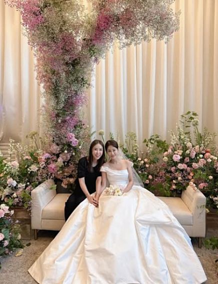 공개된 사진 속 신지는 지난 주말 진행된 김준호-김지민 커플의 결혼식장을 찾은 모습. 이날 신지는 검은색 블라우스와 깔끔한 정장 바지를 입었다.