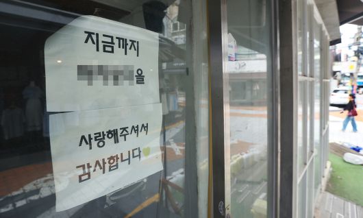 내수 부진과 고금리 기조에 막혀 문을 닫거나 창업을 포기하는 청년 사업자들이 늘고 있다. 14일 국세청 국세통계포털에 따르면 올해 1분기 사업체를 운영 중인 30세 미만 청년 사업자는 35만4천672명(월평균)으로 1년 전보다 2만6천247명 감소했다. 관련 통계가 집계되기 시작한 2017년 9월 이후 가장 큰 폭의 감소세다. 사진은 이날 서울 서대문구 인근 한 상점에 붙어 있는 영업 종료 안내문. 연합뉴스 |