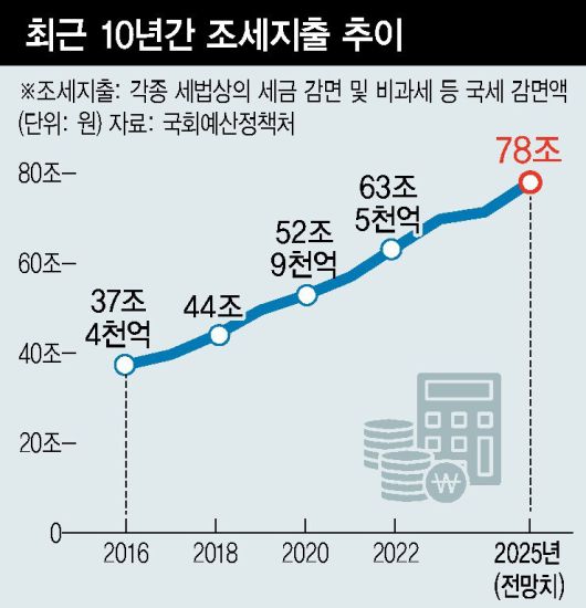 다만 정부가 조세지출 정비 원칙을 얼마나 관철할 수 있을지는 미지수다. 조세지출은 특정 정책 목표를 달성하기 위해 도입되지만, 일몰 기간 연장이 반복되며 기득권화되는 경향이 있기 때문이다. 실제 2016년 37조4천억원 규모였던 조세지출은 올해 78조원으로 약 10년 새 두배 이상 불어났다.