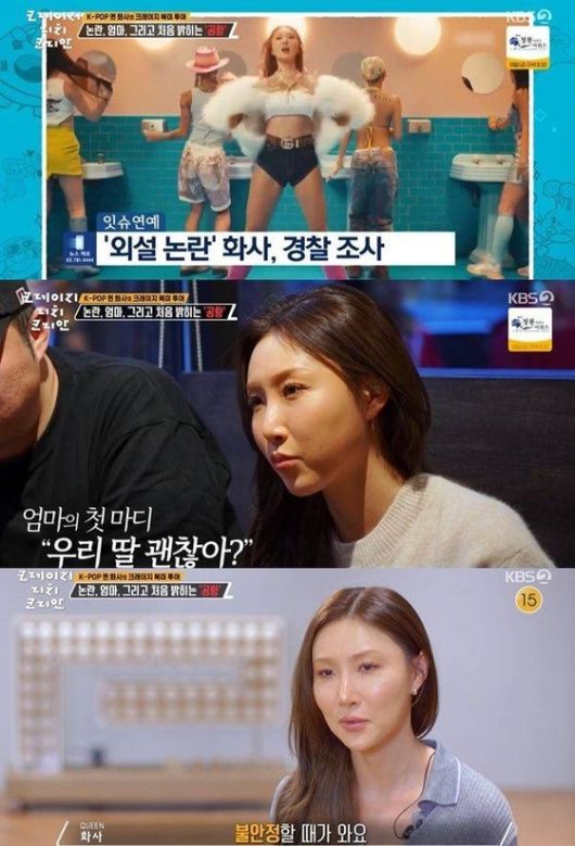 KBS 2TV '크레이지 리치 코리안'에 출연한 화사가 과거 휩싸였던 외설 무대 논란에 대한 심경을 고백했다. 〈사진=KBS 방송 캡처〉 |