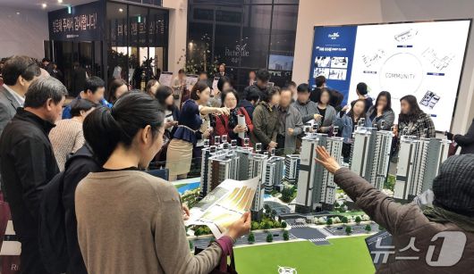 '송파 위례 리슈빌 퍼스트클래스' 모델하우스를 찾은 방문객들의 모습.ⓒ 뉴스1 |