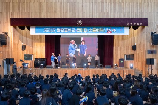 이날 현장에는 KBS 인기 프로그램 ‘개그콘서트2’의 출연진인 조수연, 신윤승이 출연해 다채로운 무대를 선보였다. ‘소개팅에서 벌어지는 해프닝’을 유쾌하게 풀어낸 콩트극 ‘데프콘 어때요?’은 명호중 전교생의 폭소를 자아내며 잊지 못할 시간을 선사했다.