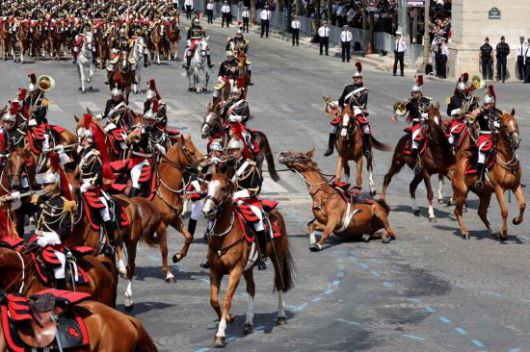 프랑스 일간 르피가로 등에 따르면 프랑스는 14일(현지시간) 오전 10시 샹젤리제 대로에서 혁명기념일 기념식을 열었다. 프랑스는 프랑스혁명의 도화선이 된 1789년 7월14일 바스티유 감옥 습격 사건을 기리기 위해 매년 대규모 군사 행진을 펼쳤다.