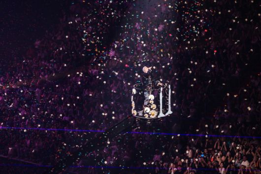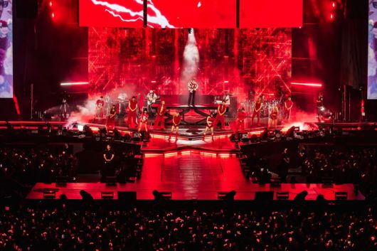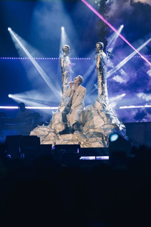그는 이번 월드투어에서 트레이드 마크인 빨간색 로즈 재킷이 아닌 형형색색의 컬러풀한 장미로 이뤄진 새로운 재킷을 착용했으며 이와 함께 블루 바이올렛 색감의 헤어 컬러는 새로운 시그니처로 눈길을 끌었다.