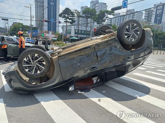 이 사고로 SUV차량이 전복됐고, 경차에 탑승해 있던 운전자와 동승자가 다쳐 인근 병원으로 이송됐다.
