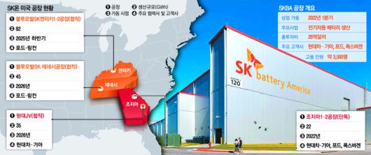 현대차 HMGMA에서 만드는 전기차 아이오닉5, 아이오닉9에는 SKBA에서 생산한 배터리가 단독으로 공급되고 있다. 조지아에 있는 기아 공장에서 생산하는 전기차 EV6, EV9에도 SKBA 배터리가 들어간다. SKBA는 지난해 말 기존 배터리 생산라인 일부를 아예 현대차의 전기차용으로 전환했다. 현재 전체 12개 배터리 생산라인 중 9개가 현대차용으로 쓰이고 있는 것으로 전해졌다.