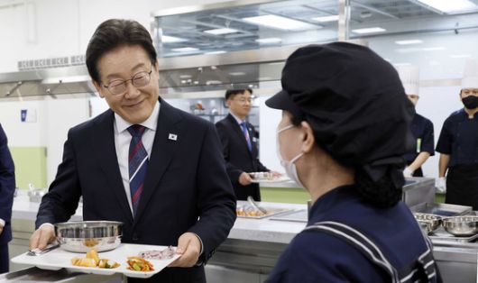 이재명 대통령이 14일 충북 진천 국가공무원인재개발원 구내식당에서 배식 직원과 인사하고 있다. 이 대통령은 이날 ‘국민주권시대, 공직자의 길’을 주제로 5급 신임관리자과정 대상 특강을 했다. 식사 뒤에는 청주 궁평2지하차도 침수 사고 현장을 찾아 안전 개선 상황을 점검했다. [사진 대통령실사진기자단] |