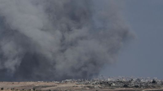 ▲ 14일(현지시간) 이스라엘군 공습으로 연기 피어오르는 가자지구 북부 접경 지역