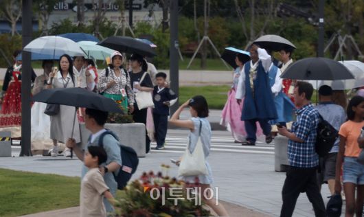 아침 최저기온은 19∼23도, 낮 최고기온은 26∼30도로 예보됐다. 당분간 비가 오는 지역은 기온이 조금 내려가겠다.