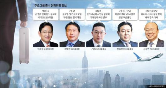 글로벌 경기 침체와 트럼프발(發) 관세, 중국의 추격 등 경영환경의 악화로 재계의 발걸음도 바빠지고 있다. 반도체를 비롯해 가전, 철강 등 국내 주력 산업들의 부진한 성적표가 이어지면서 삼성·SK·LG 등 주요 그룹 총수와 경영진은 사실상 여름휴가를 반납하고 위기 돌파에 매진하는 모습이다.