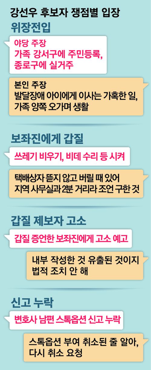 또 후보자 가족이 주민등록상 거주지인 서울 강서구가 아니라 서울 종로구에 살고 있다는 ‘위장전입’ 의혹에 대해선 “발달장애를 가진 자녀를 돌보면서 처한 상황 때문에 생긴 오해”라며 울먹였다.