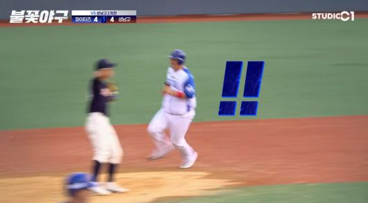 3회말 선두타자가 몸 맞는 볼로 출루한 성남고는 작전에 돌입했다. 김민석이 기습번트를 댔지만 뜬공으로 3루수가 잡으면서 1아웃. 이률의 공은 우익수 김문호가 잡았고, 이진혁은 중전안타로 출루했다. 4번타자 이서준의 타석에서 볼넷으로 2아웃 주자 만루가 됐다. 그러나 이택근의 수비로 이닝은 마무리됐다.